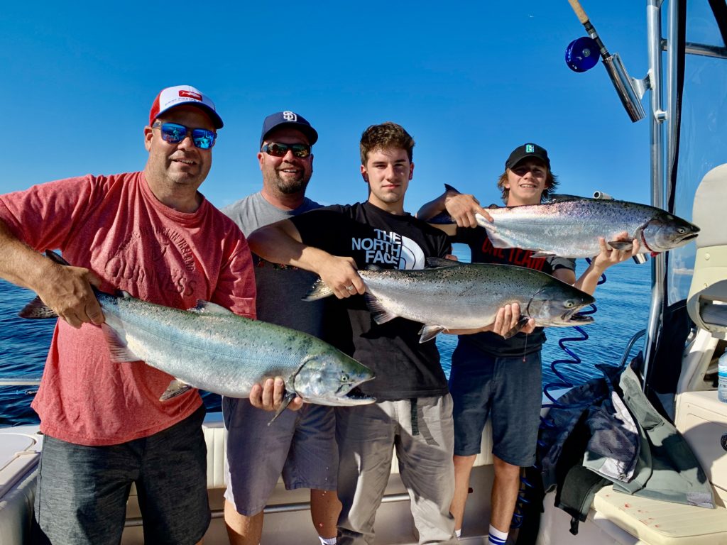 Once Sep 1 rolls around, the vast majority of angling pressure will shift to the Bell Buoy, North Arm, T-10, and South Arm. For those of you that follow me on Instagram, you will have read my post about some DNA sampling I did this week. I am happy to report there were still very impressive numbers of “red springs” around. This will definitely thin out over the coming days, but I do expect decent fishing opening day. The numbers of reds will diminish but the number of larger “white springs” will increase as the days of September roll on. My favorite part about this fishery is the depth. The fish are shallow, basically they are in the top 60 feet of the water column, so fish your rigger depths accordingly. Bait is definitely a top producer for these fish. Anchovies or smaller herring in chrome, UV green, or green glow or chartreuse glow teaser heads all work very well. Pair these up with the appropriate chrome, UV, or glow flashers and you have a winning combo. Fish the chrome or UV setups on your shallow rods and the glow rigs on the deeper rods.