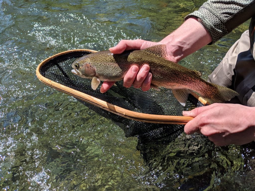 We nymphed quite a bit in the morning and hooking fish on the standard prince nymphs, golden stones and other mayfly and stonefly imitations. We stayed late hoping for a hatch but nothing of note came off. The interesting thing was that even though there were not a ton of insects on the water when we found rising fish we caught them. They were very hungry and not very picky. We hooked a half dozen fish on dries in the afternoon on standard grey mayfly imitations in a size 10-12.