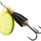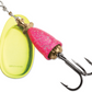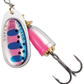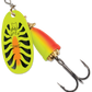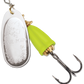 Runs 2 feet to 6 feet. The patented two-part body emits low-frequency sound vibrations that attract fish and trigger strikes while virtually eliminating line twist. The Classic Vibrax® gets a tasty candyback! Colored bell is accented with metallic flecks. Blade is tipped in matching color, while blade back is finished with transparent, fluorescent coordinating color. Flaw-free silver plating, fine tolerances and super-sharp hooks are long-standing features of this low frequency emitting patented two-part body spinner.