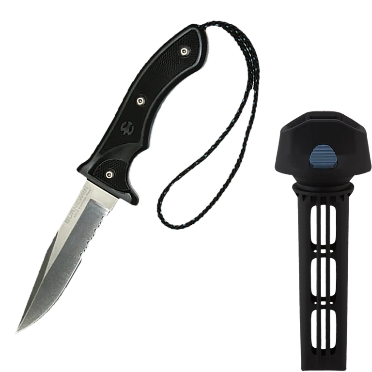 The 7” Ocean Knife is a strong clip-point design that can handle heavy-duty work. Just knowing that this ocean knife is on board and ready inspires confidence aboard the ship. Of course, that ship doesn’t have to be a water-based ship! We’ve seen plenty of land-based applications for this boating knife in combination with any of our versatile mounts. (Picture this boating knife mounted on your UTV in our vertical-surface composite GM300 mount for example). The flat-sided scales provide positive control in less-than-ideal weather and incorporate a generous guard between the handle and blade. A great gift idea for someone wanting the best boating accessories!