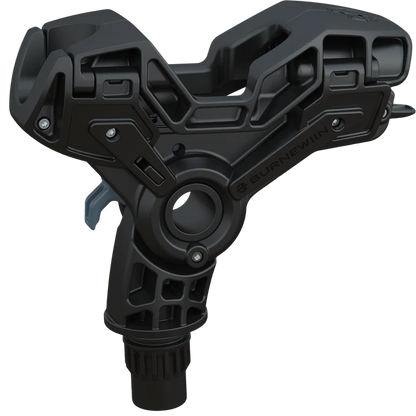 The RH6650 Rod Holder looks may be rather intimidating, but it is actually a very simple and effective rod holder. The rod will sit at both 45 degree and flat fishing positions at 22.5-degree horizontal angles. The universal rod loads from the top with the aid of a very slick over-center mechanism allowing the use of big rod butts for stand-up fighting. Totally overbuilt, injection-molded, glass-reinforced nylon makes it the first plastic rod holder that will handle the big gear. It accepts an impressive range of rods and reels very securely. As you might expect, it seamlessly inserts into Burnewiin universal mounts allowing full use of other Burnewiin boating & fishing accessories. Bottom line, the RH6650 is no toy and will become an essential tool for anglers that take advantage of its benefits.