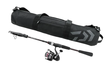 Don't get stuck on your next trip without having your Daiwa rod and reel. The Daiwa Compact Travel kit comes with a high-quality telescopic rod developed with Daiwa's patented V-Joint technology that eliminates flat spots where the connection points are on multi piece rods.