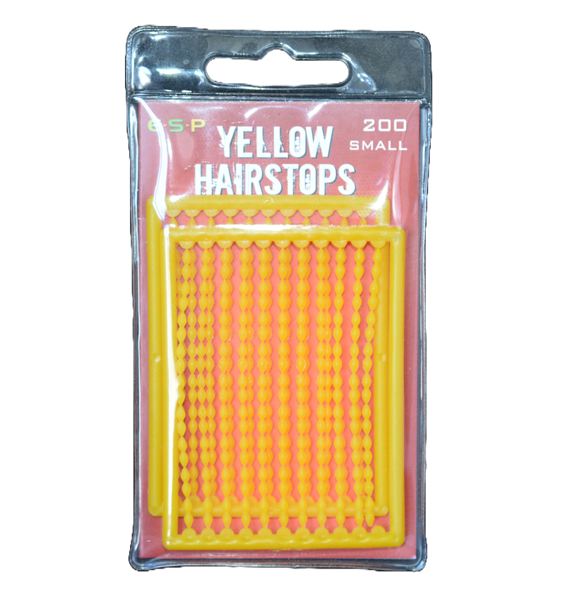 ESP hairstops have tapered ends making it easy to thread into the end loop of a hair rig. Available in clear, translucent green and yellow. 200 stops per packet.