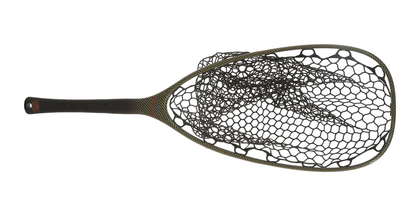Nomad Nets are constructed with carbon fiber/fiberglass composite material. The result is a very lightweight and durable net. Nomad Nets are built for the conditions that prevail where great fishing exists; they are waterproof, UV protected, and float like a cork. The Nomad Emerger net was designed to work with both packs and vests. The longer handle can easily tuck behind a pack but is not too long to hang off the back of a vest.
