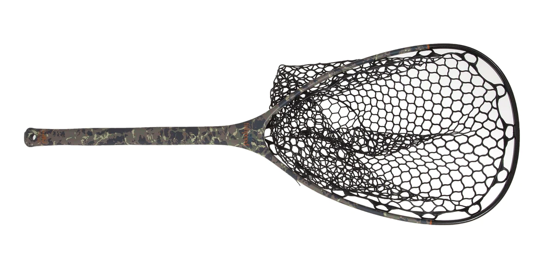 Nomad Nets are constructed with carbon fiber/fiberglass composite material. The result is a very lightweight and durable net. Nomad Nets are built for the conditions that prevail where great fishing exists; they are waterproof, UV protected, and float like a cork. Our Nomad Hand Net suited the vest-types, and the Guide Net got the pros' attention. The hardcore lumbar pack wearer, however, wanted a net with a little more length in the handle so they could stuff it between their pack and their back. The Mid-Length Nomad is it.