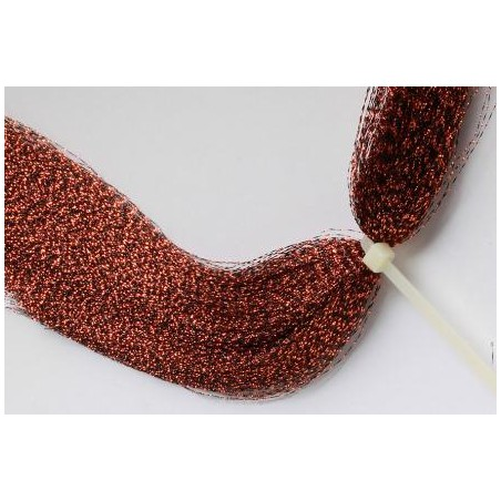 A twisted fiber with a unique barred print pattern on it which mimics the loof of a grizzly feather. Conatins approximately 4 grams of fibers, 1/100" wide by 10" long.
