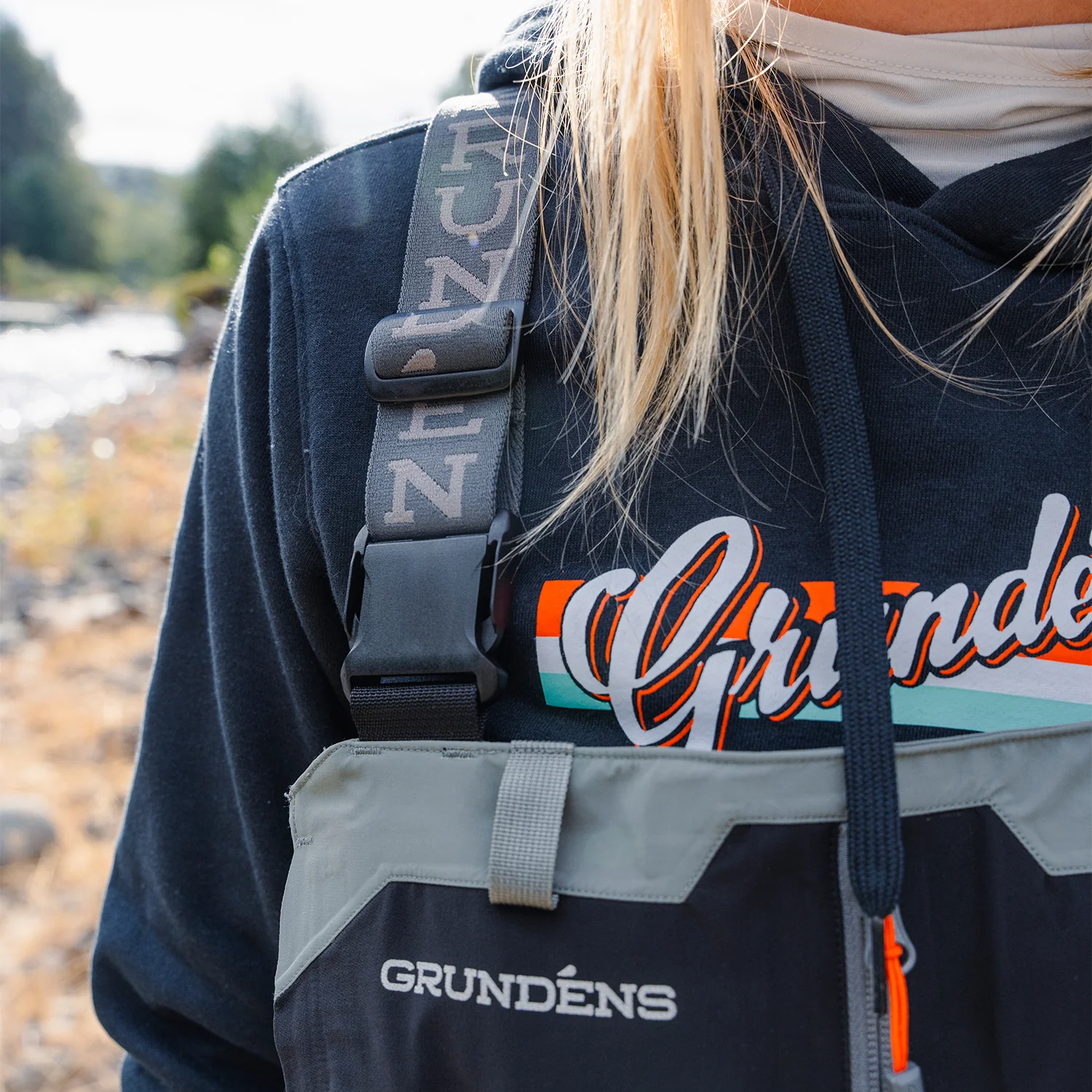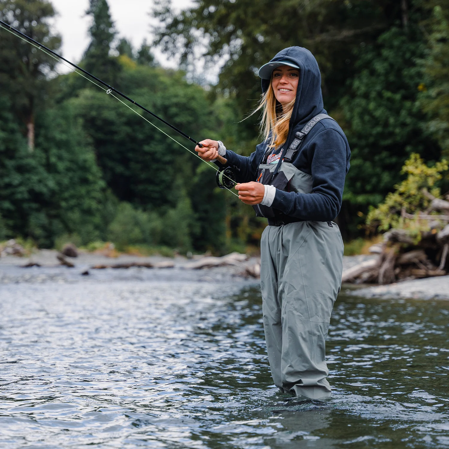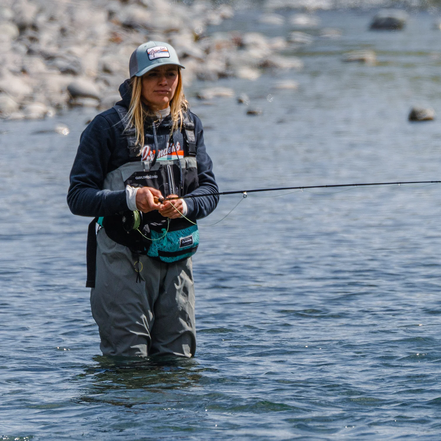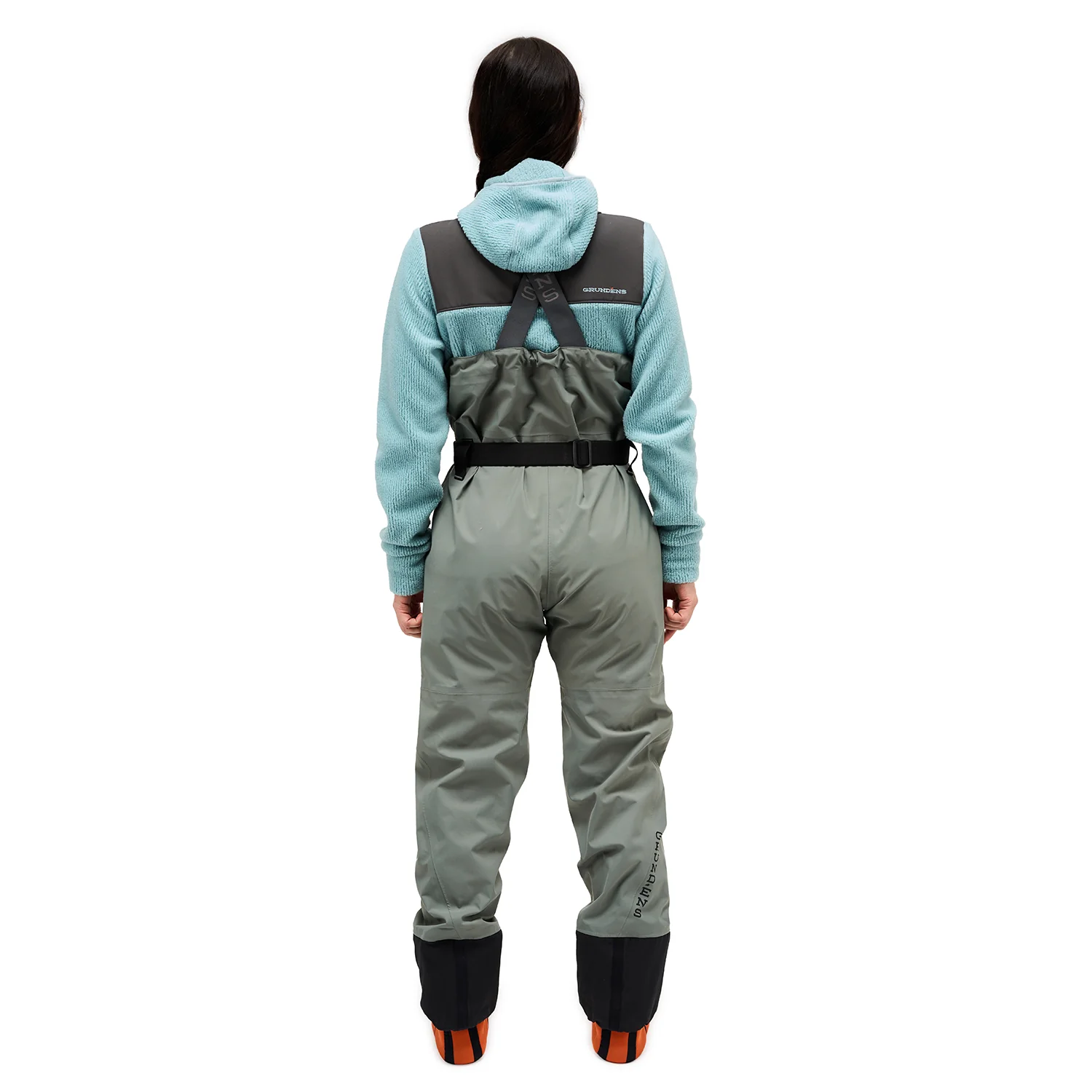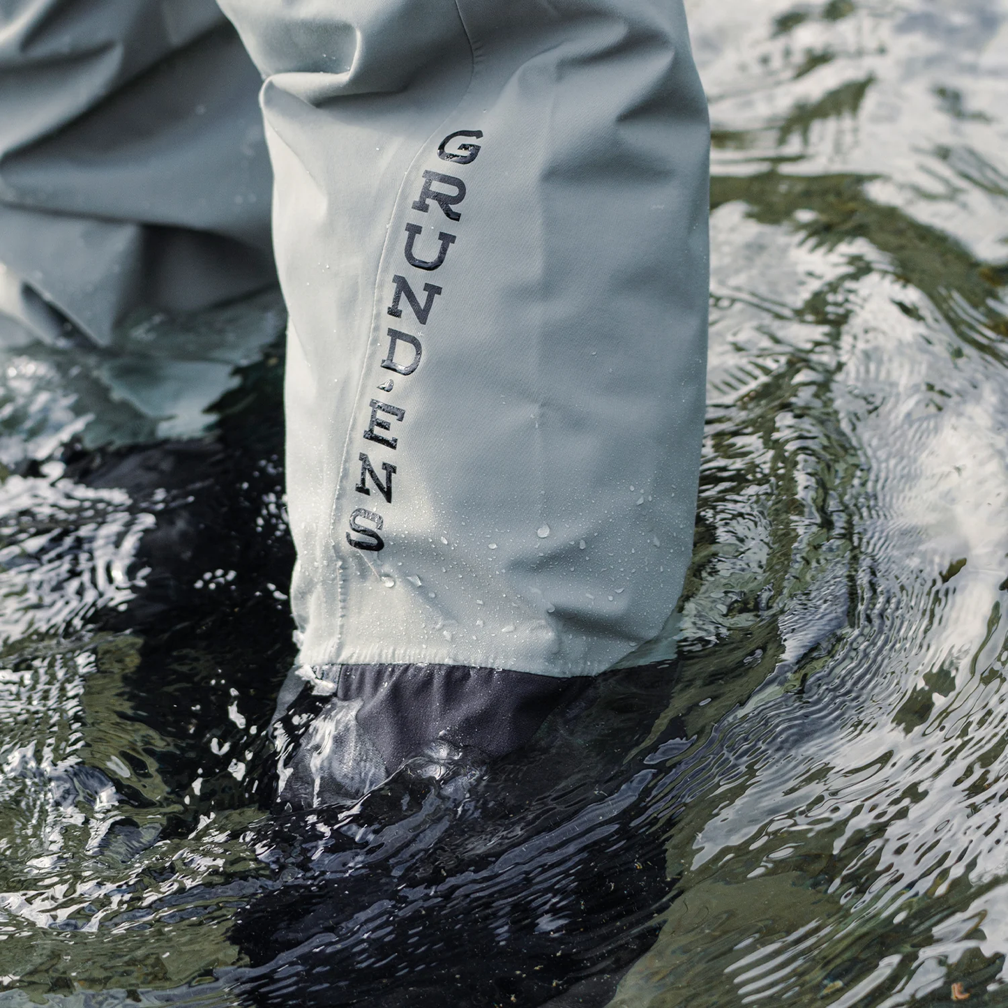 Prioritizing ruggedness and mobility was the key focus in building the Bedrock Stockingfoot Wader. Featuring an ultra-dense 100% nylon outer combined with a durable 4-layer puncture resistant lamination finish, the Bedrock Wader boasts a 30K+ submerged waterproof rating so your only worry should be on landing that fish of a lifetime. Built with Grundéns proprietary wading mobility patterning for ease of movement when navigating your favorite river, Bedrock includes a bevy of fishing-focused features like strategically placed tackle and utility storage pockets and stretch woven gravel guards. Complete with anatomically shaped, size specific, and warming neoprene stockingfeet, the Bedrock Wader sets you up for success no matter the season.