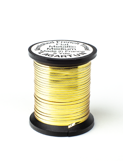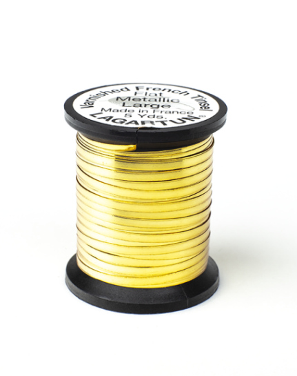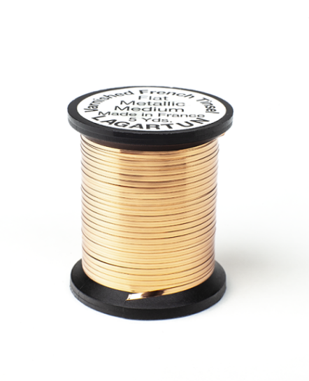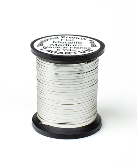 All flat tinsels are available in three sizes small, medium and large. All these sizes are available in silver, gold and copper. These are staples for the majority of Spey Dee and Classic patterns, as well as other patterns. As with all of our other tinsels, these are varnished.