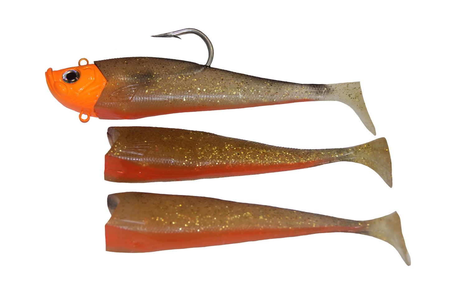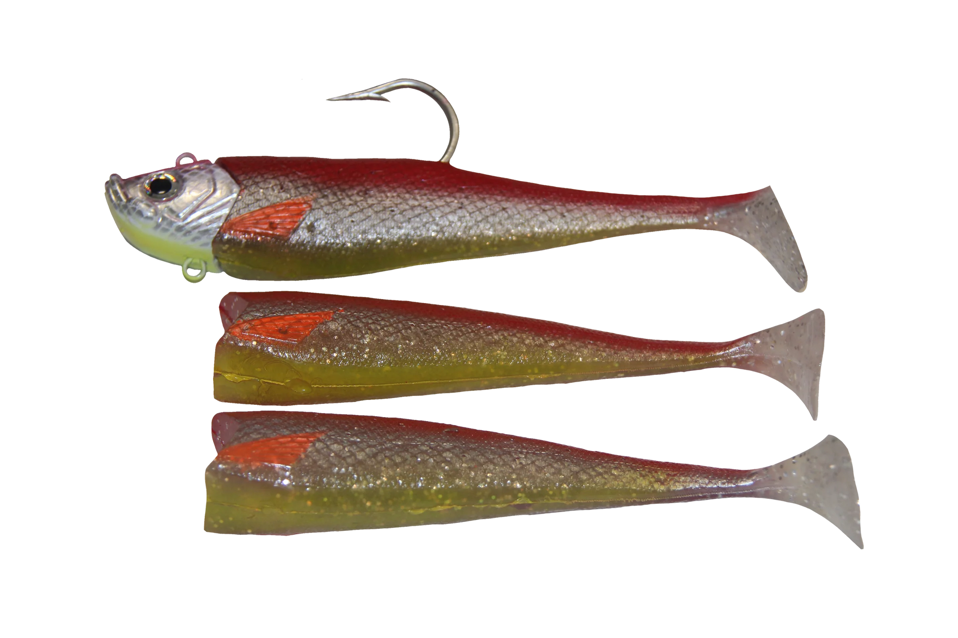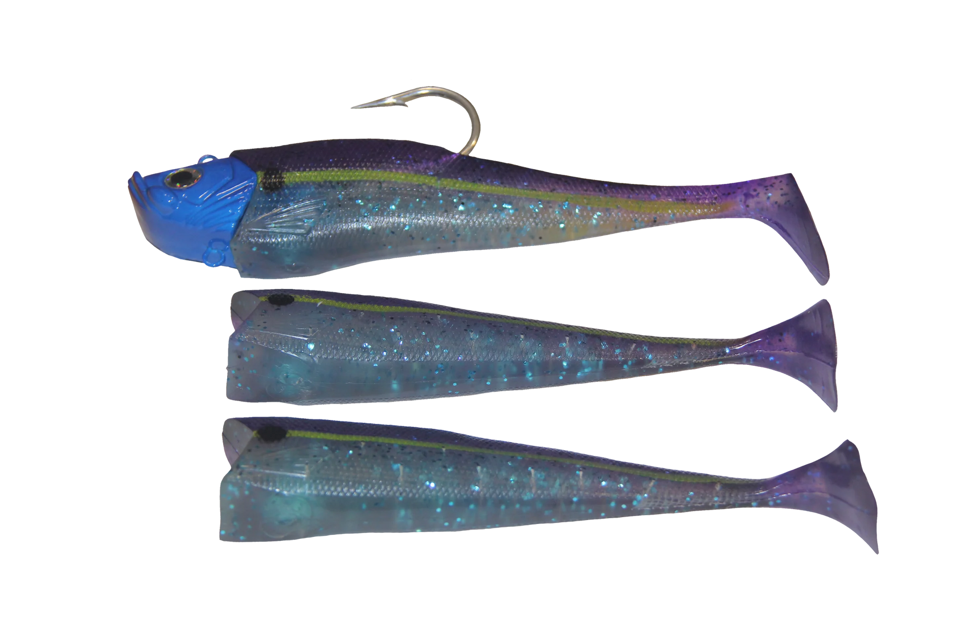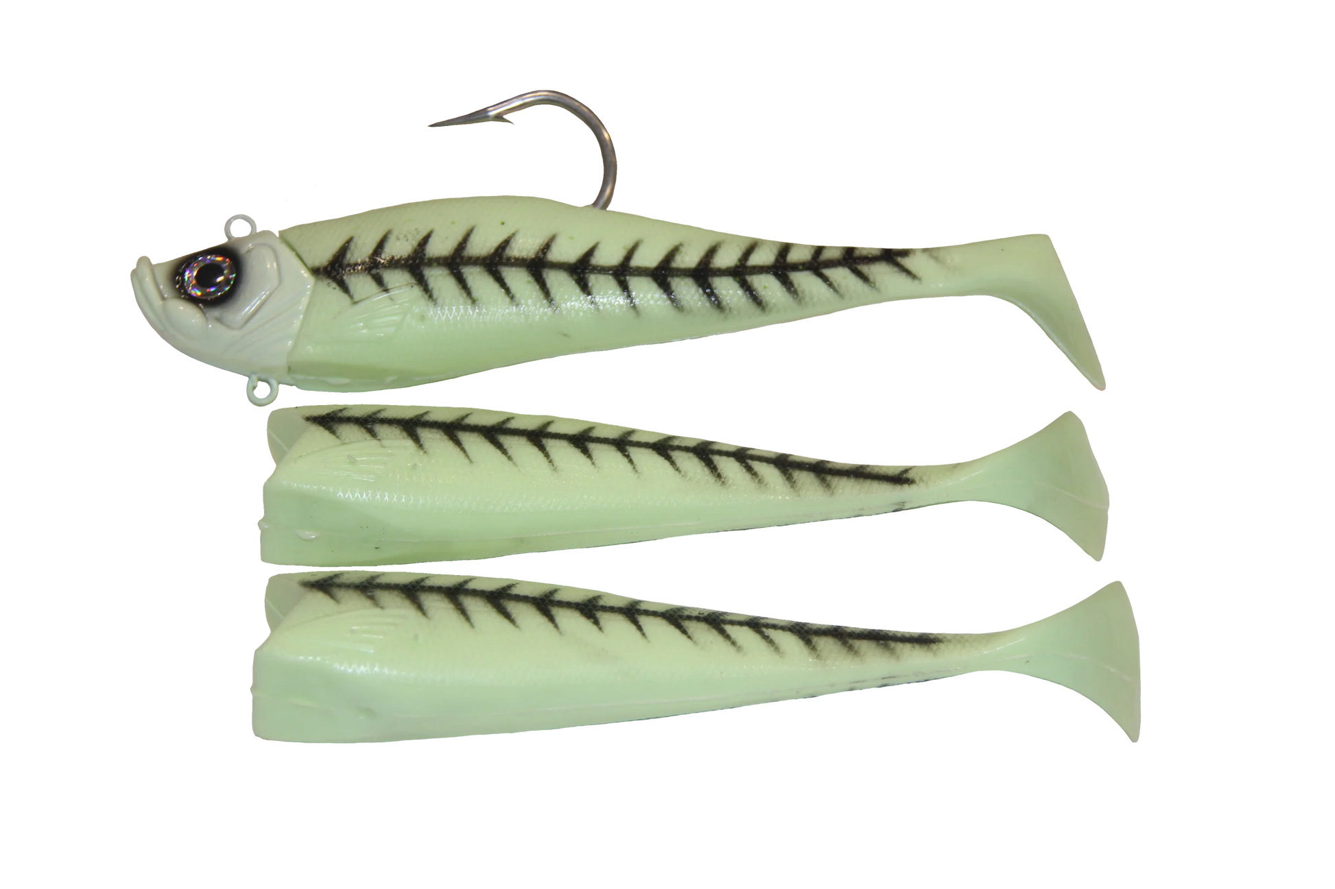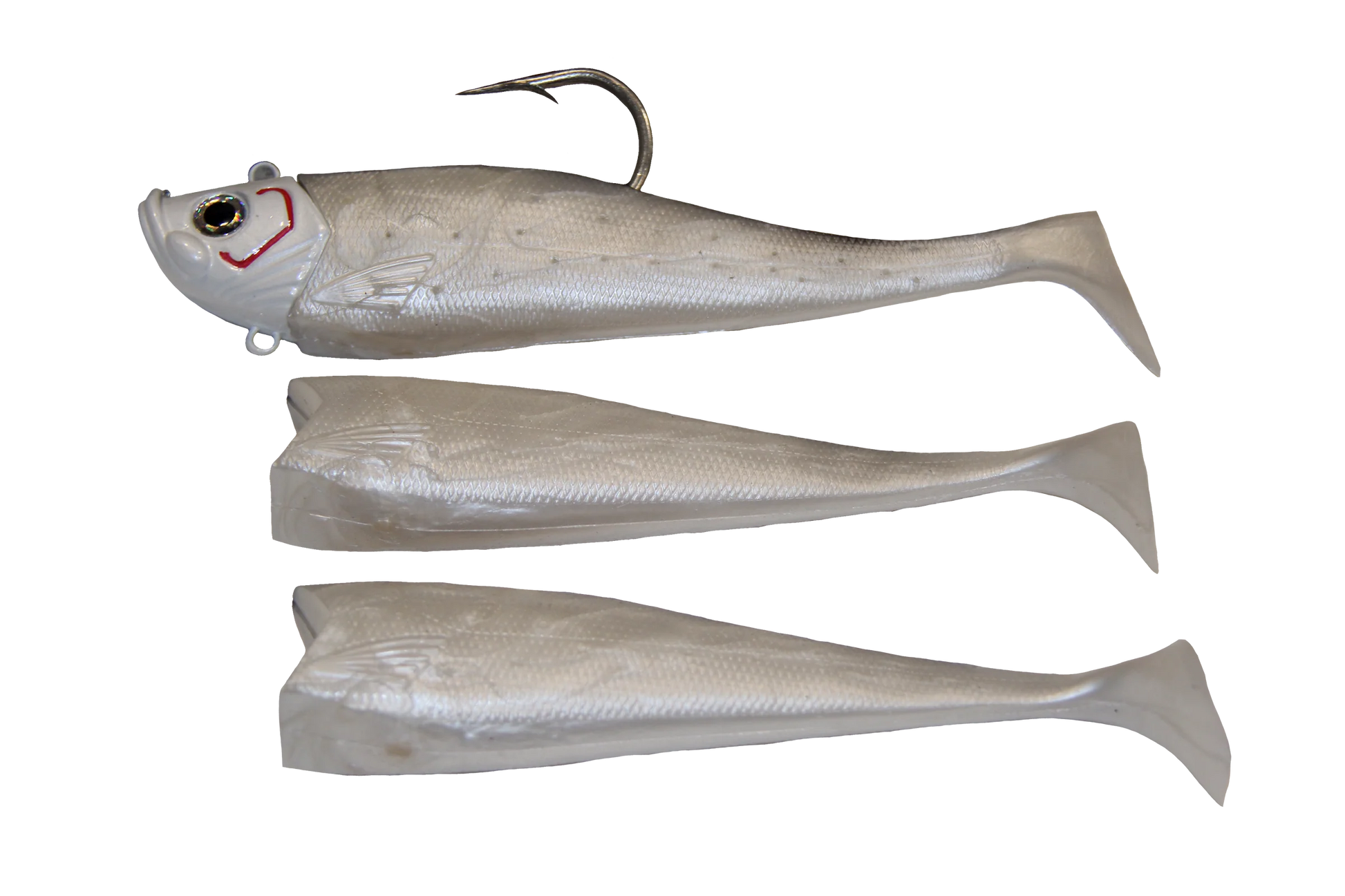 The Mega Bite swim tail jigs are deep drop swim tails with amazing swimming action for all types of bottom fish. Tails are reinforced with mesh and are extremely durable. The jigs are effective for all types of fish such as Lingcod, Halibut, Snapper, Cod, Tuna, Grouper and all other types of predator fish.