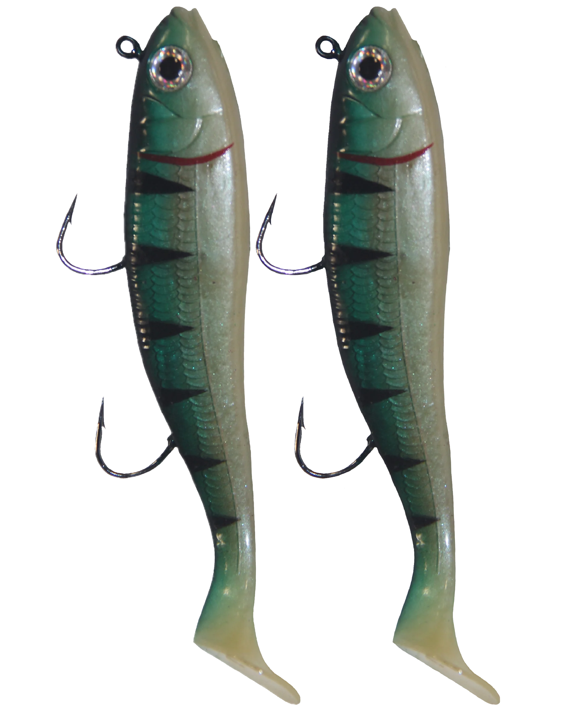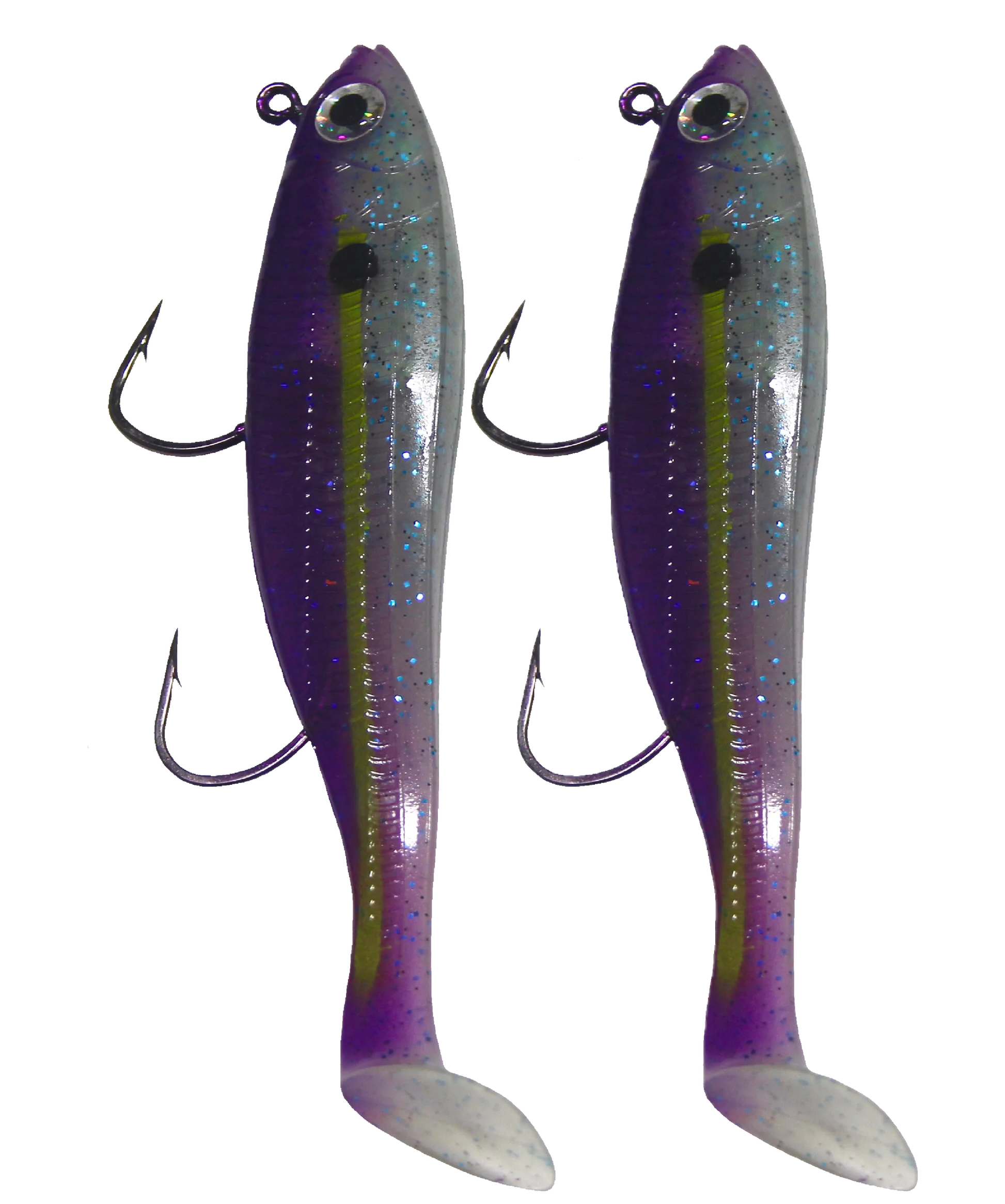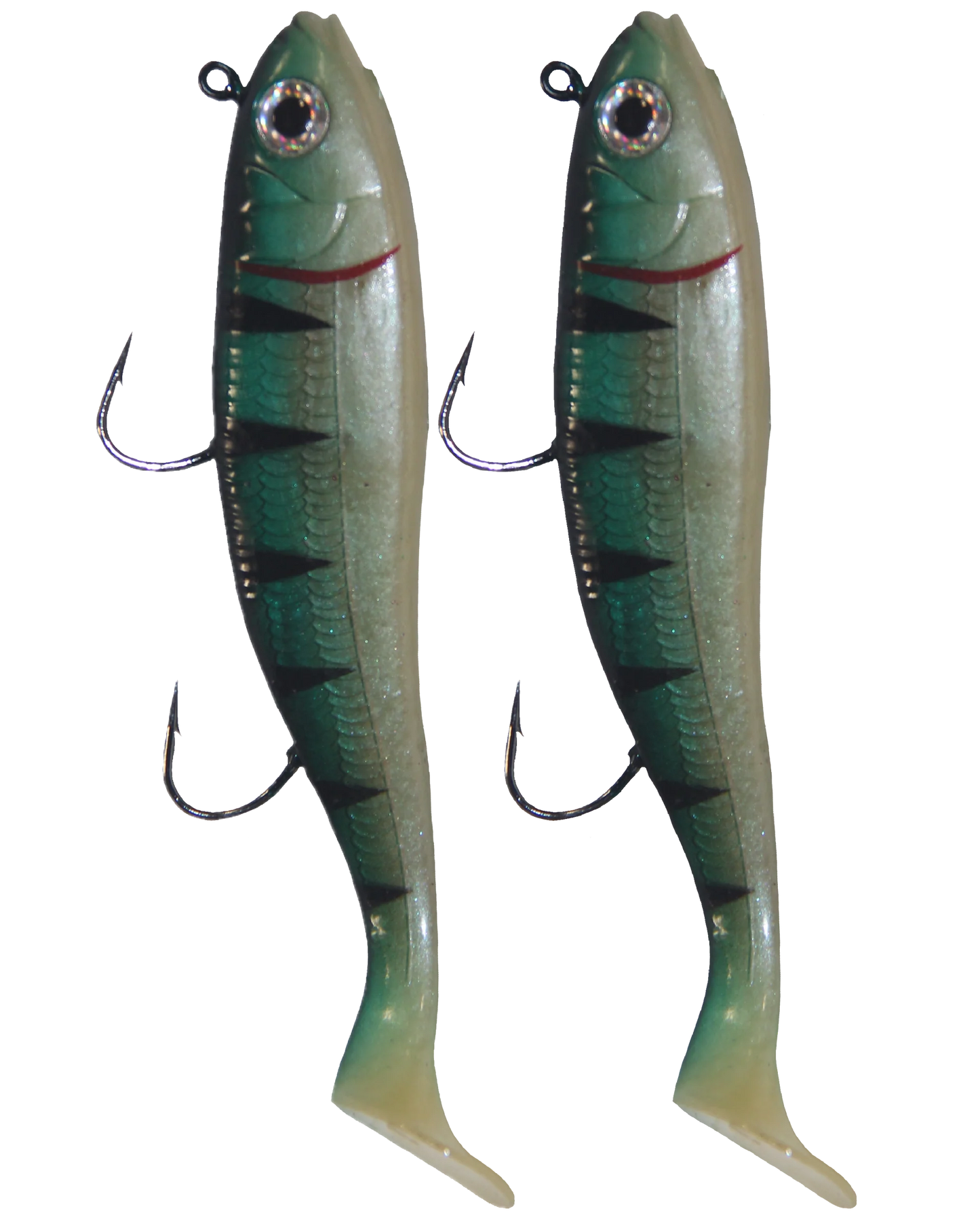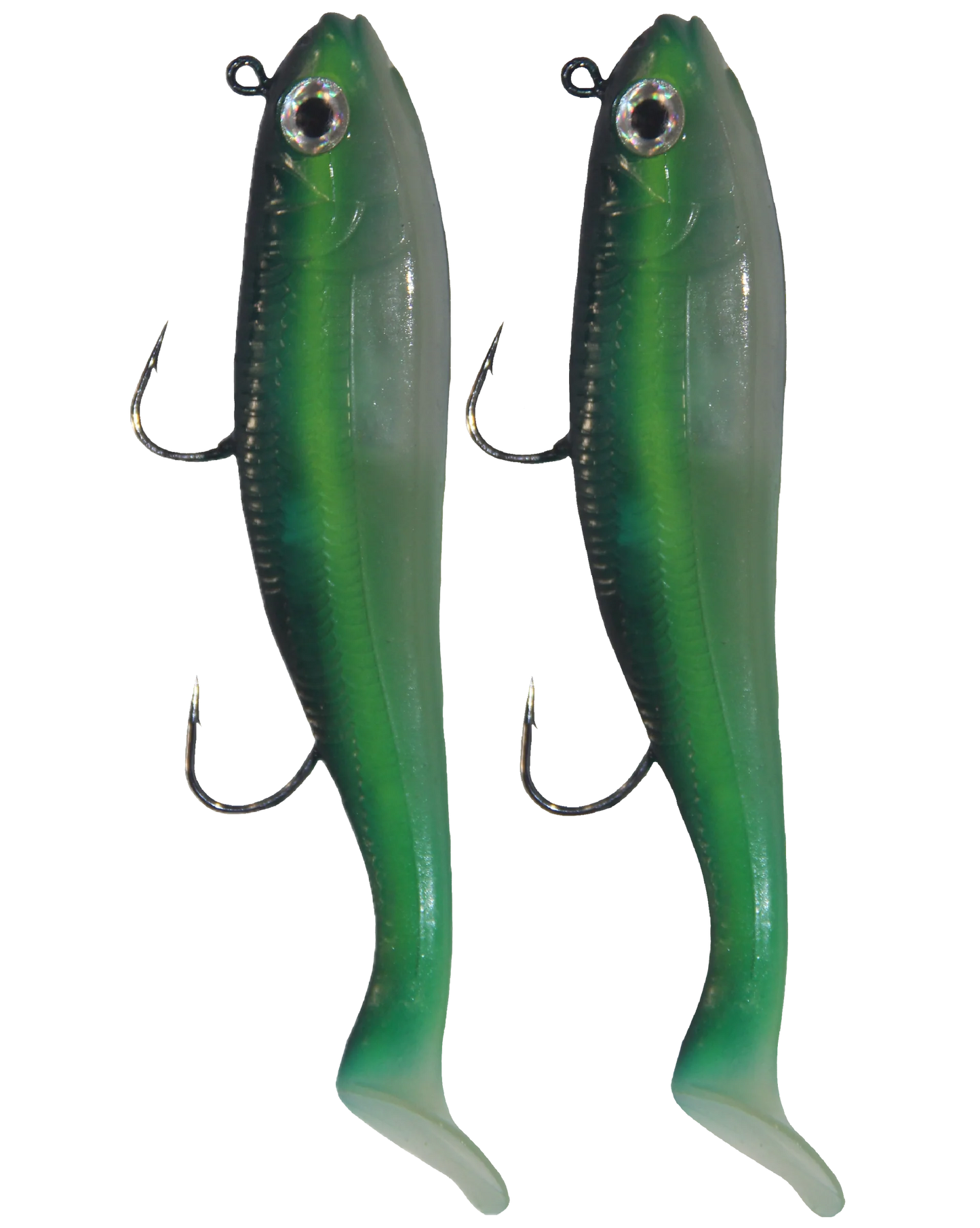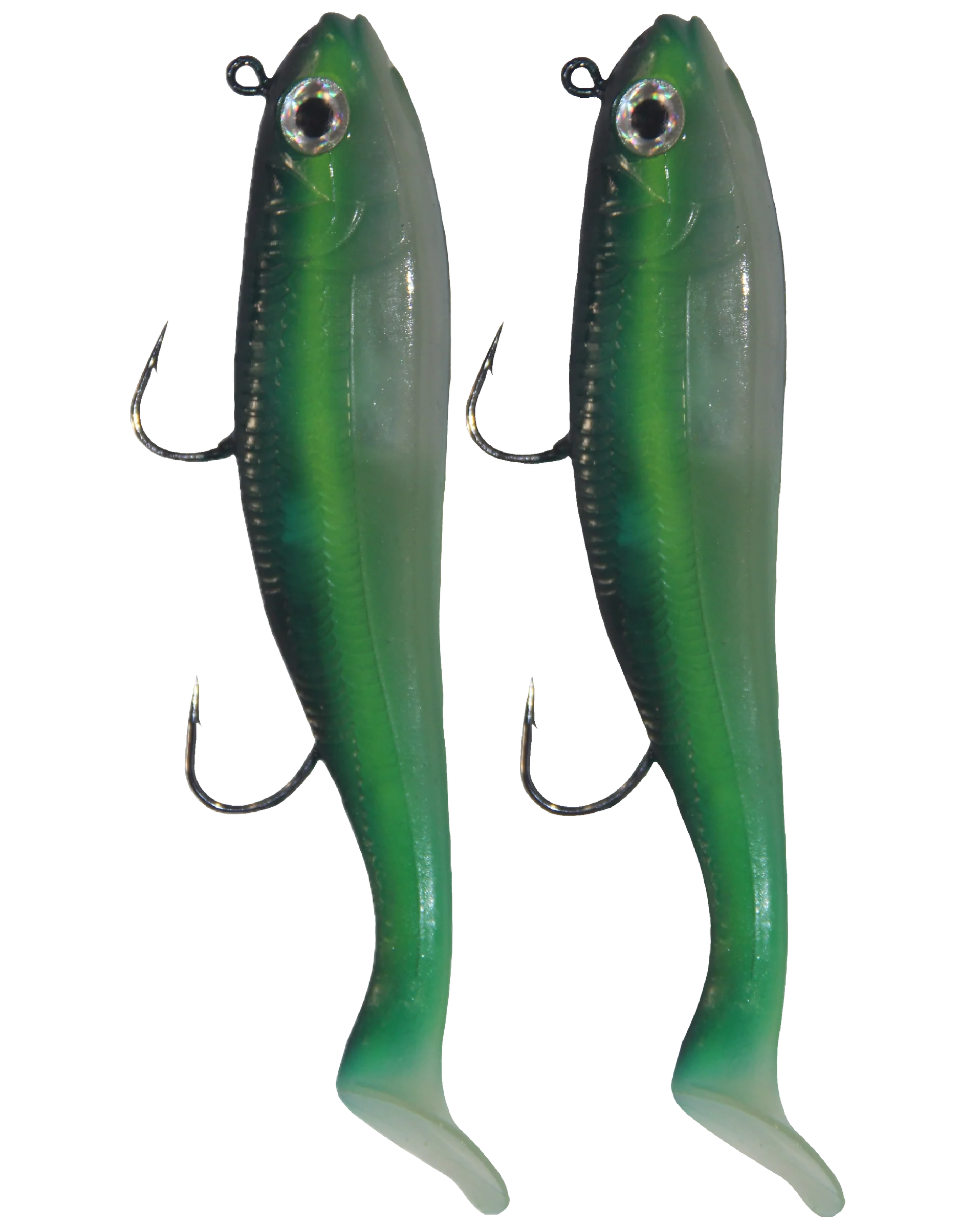 The Mega Bite swim tail jigs are deep drop swim tails with amazing swimming action for all types of bottom fish. Tails are reinforced with mesh and are extremely durable. The jigs are effective for all types of fish such as Lingcod, Halibut, Snapper, Cod, Tuna, Grouper and all other types of predator fish.