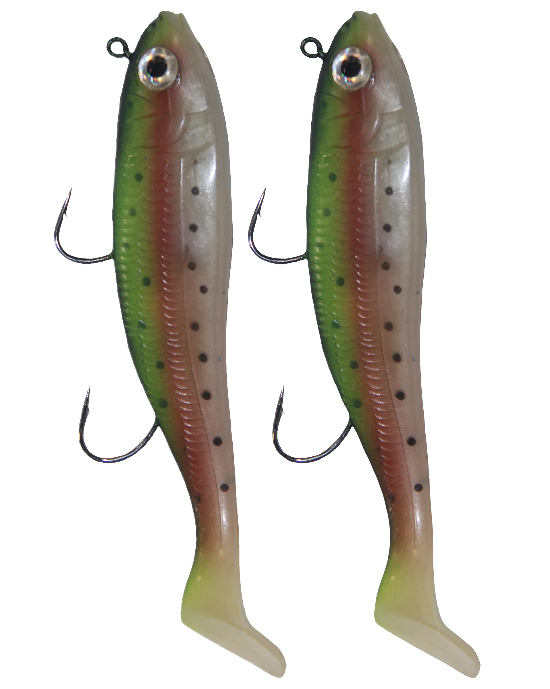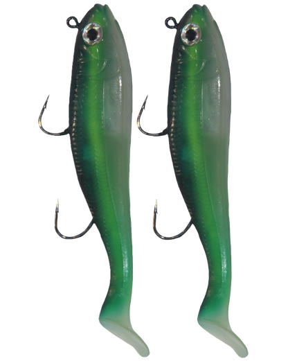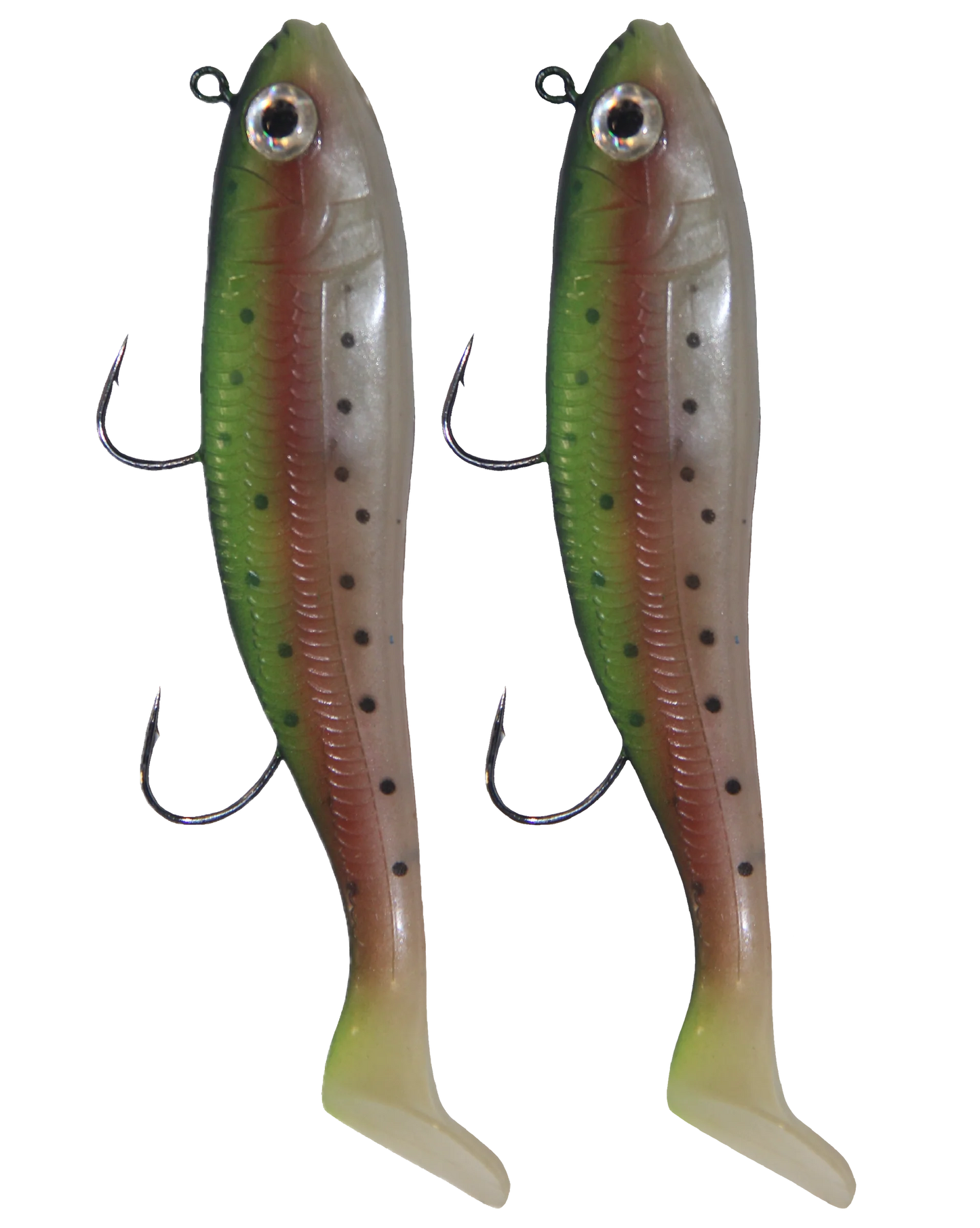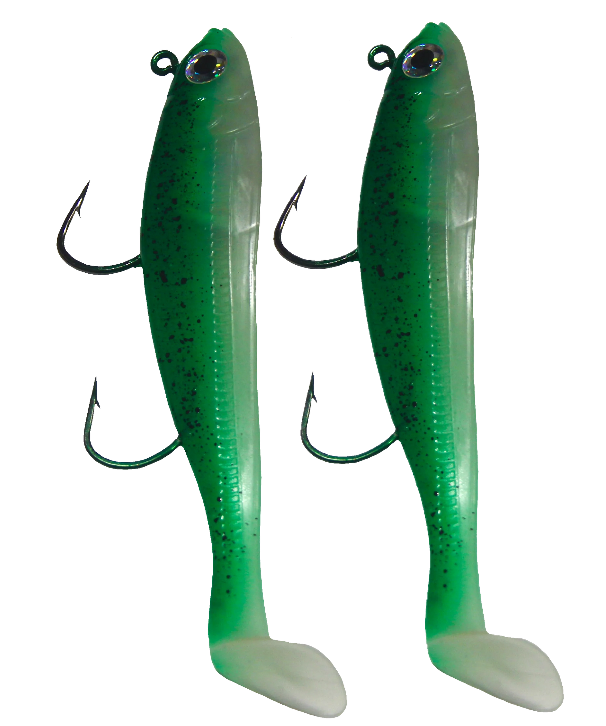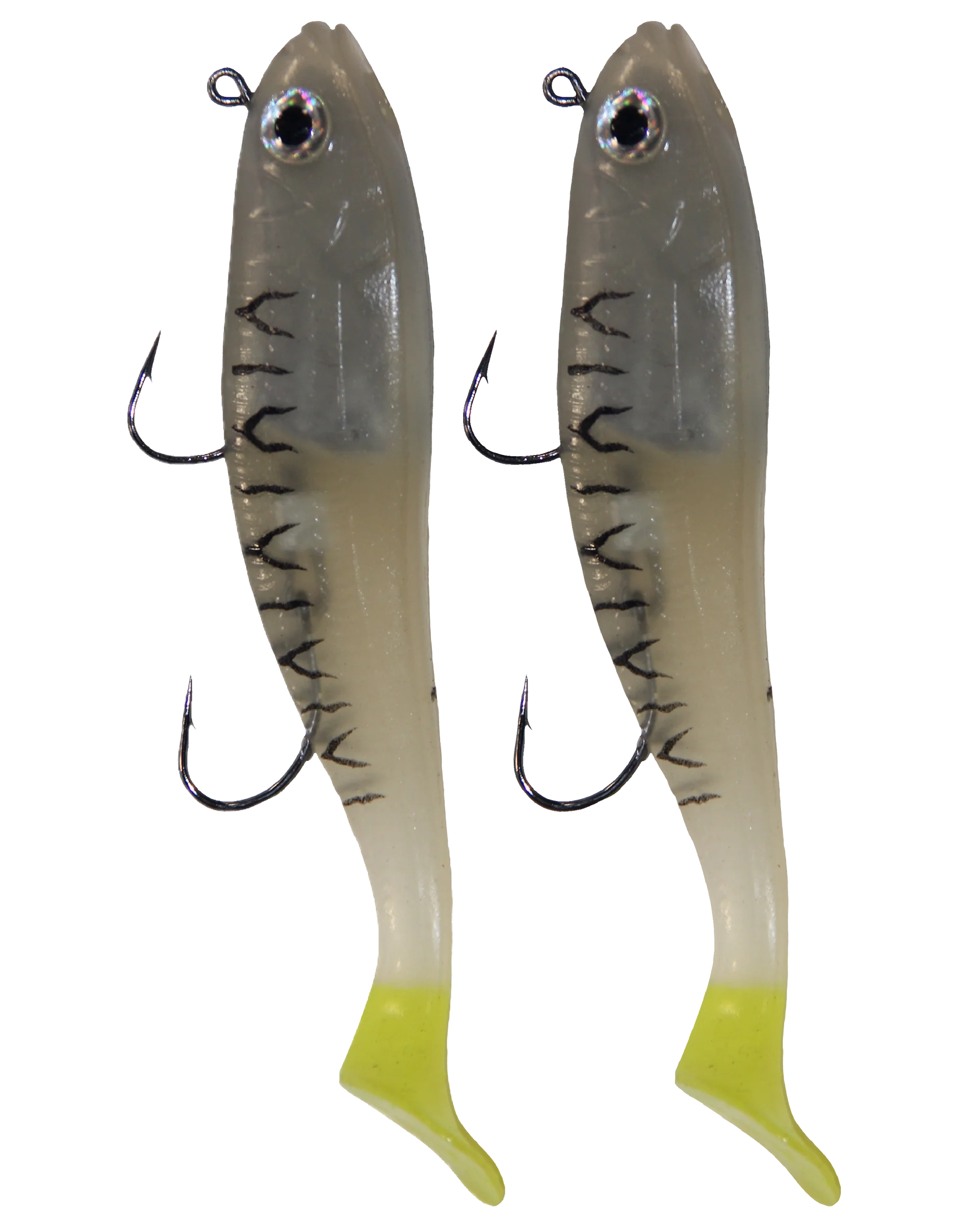 The Mega Bite swim tail jigs are deep drop swim tails with amazing swimming action for all types of bottom fish. Tails are reinforced with mesh and are extremely durable. The jigs are effective for all types of fish such as Lingcod, Halibut, Snapper, Cod, Tuna, Grouper and all other types of predator fish.