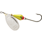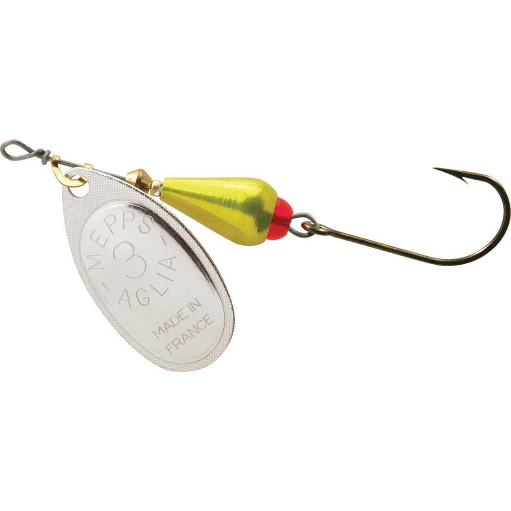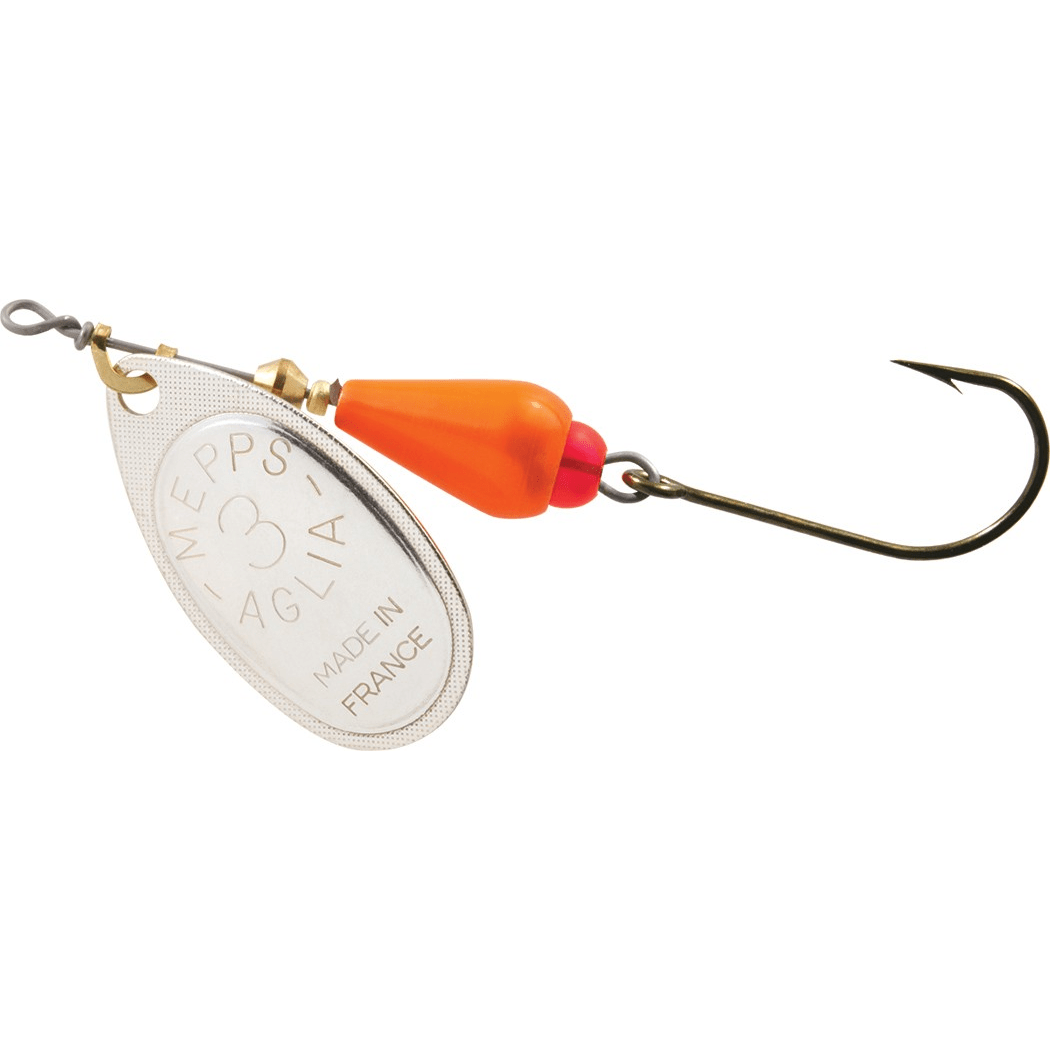 In addition to the classic Mepps French blade, every Mepps Aglia BRITE features a solid brass brightly-colored, high-visibility body with a durable, chip-resistant finish. There's also a BRITE strike-attractor bead and an extra-sharp VMC hook. Blades are either genuine silver plate or polished brass.
