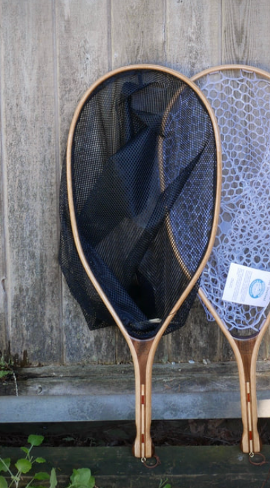 That is why Mobynets has become an industry leader in the art of steam bending. When a piece of solid oak is steamed to the correct temperature, its wood cells begin to elasticize; this allows us to bend the wood easily into its desired shape. Once the wood has cooled its cell structure returns to normal, making for a strong, flexible and durable net that will provide years of reliable use. The attractive inlays are made from the finest of hardwoods, walnut, maple, and padauk. Each of these beautiful woods add durability and strength to each and every Mobynet. All Mobynets come with a soft non abrasive fish friendly mesh. The nets flat bottom design allows the fish to be held securely and comfortably. The two coats of marine grade penetrating varnish with UV blocker will provide years of protection from the elements.