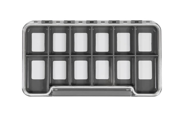 These thin waterproof boxes have secure waterproof latches, high density rubbers seals, and magnetic inserts in each compartment. These boxes have more depth than our standard slim boxes to fit larger flies.