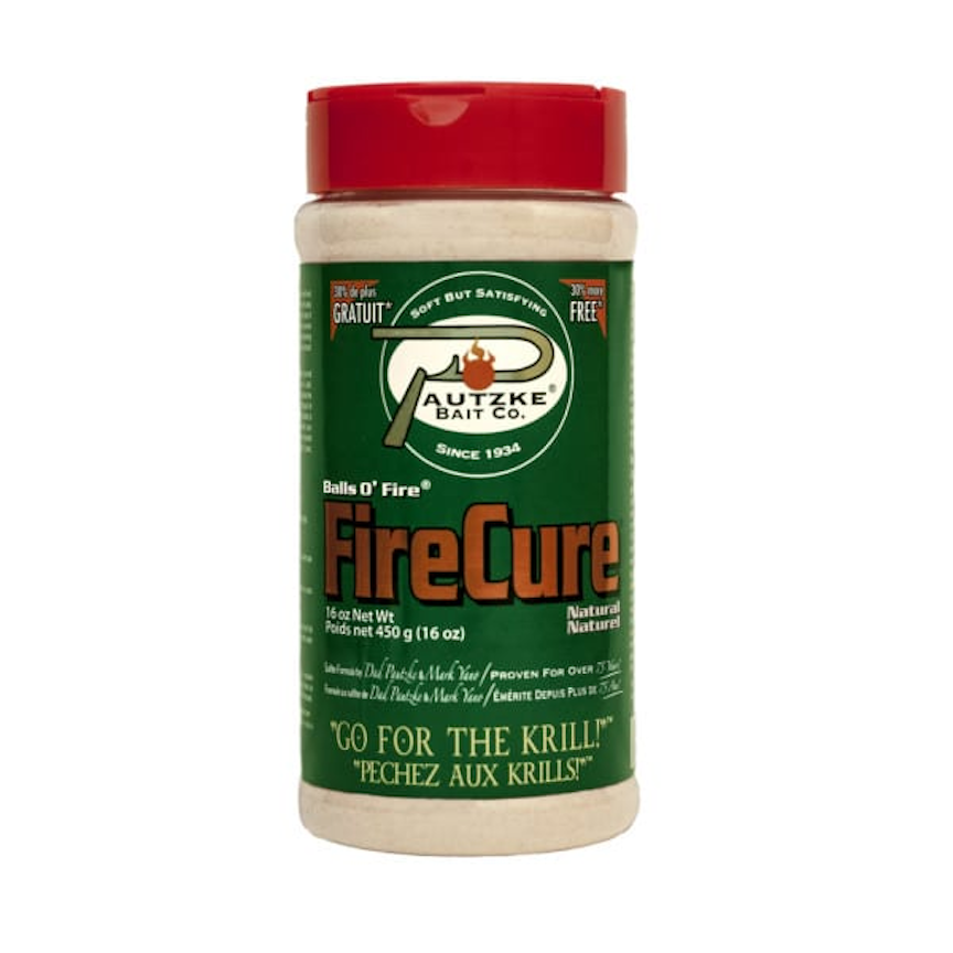 To maximize angler results, Pautzke’s new, highly acclaimed Krill attractant was combined with Fire Cure’s™ multi-color lineup making it the most versatile cure for all weather/water conditions. Krill, proven to be a major food source for salmon and steelhead, has the strongest scent/attractant properties known, making Fire Cure™ the most efficient colored/scented formula available.