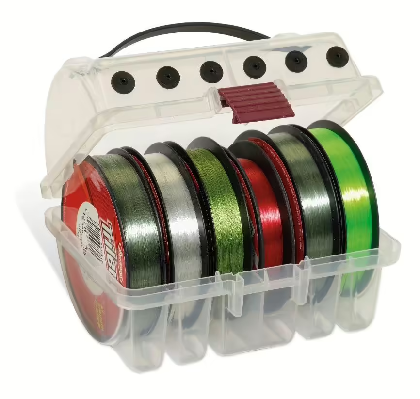 Whether mono, fluorocarbon or braid, the condition of your fishing line is too important to leave to chance. Keep it organized and tangle-free with Plano's ProLatch® Line Spool Box. It holds six spools of line up to one inch wide. When it's time to put line on your reels, transfer smoothly through rubber holes in lid. With a secure ProLatch® closure and convenient carry handle, this is sure to become your go-to tool for managing fishing line.