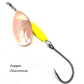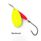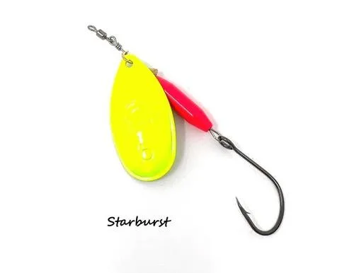 These spinners are the bomb at getting down into the strike zone. The dense weight and torpedo shape gets the spinner down quickly and stays there with the least amount of drag. These spinners won't drag as much and quickly lift to the surface like other bell spinners.
