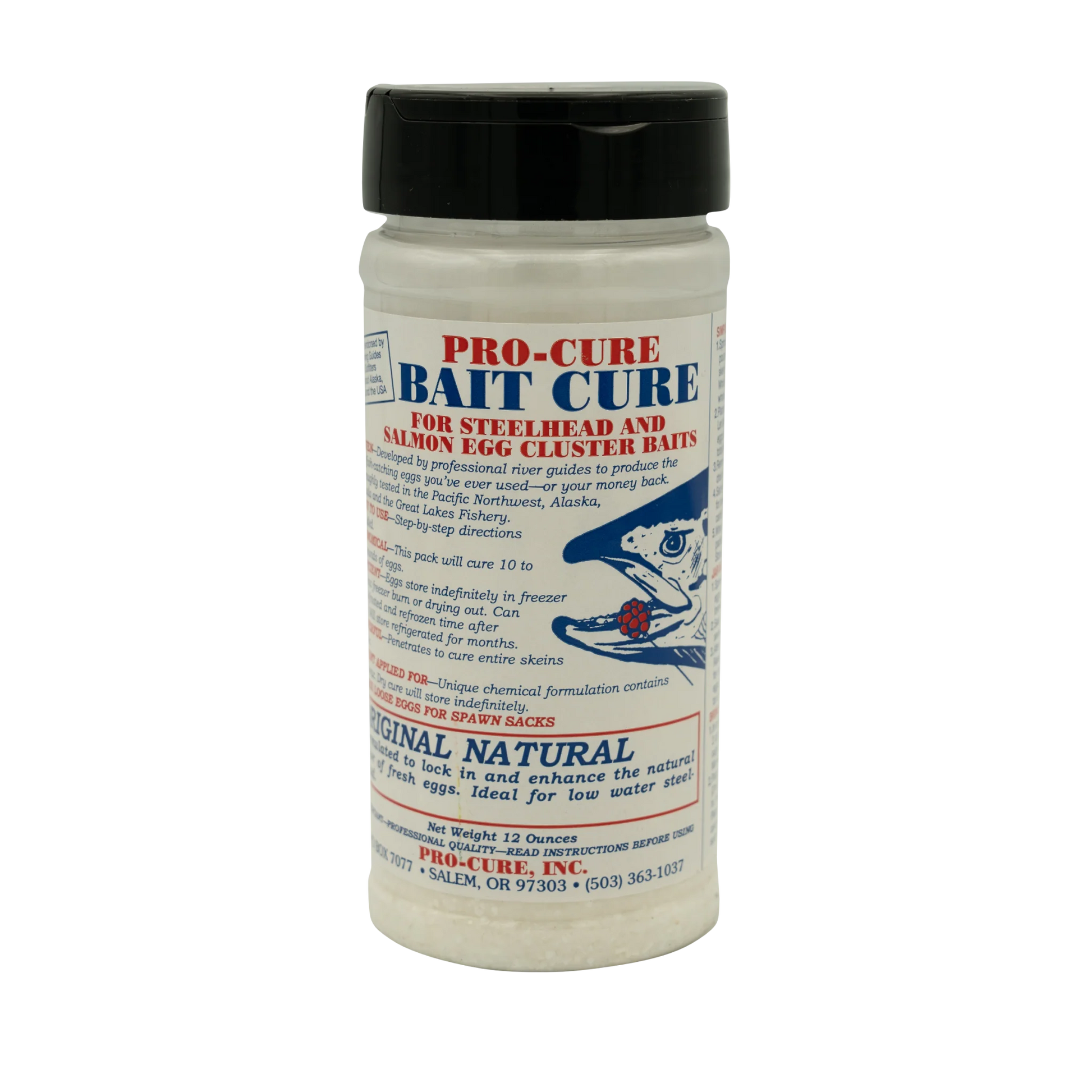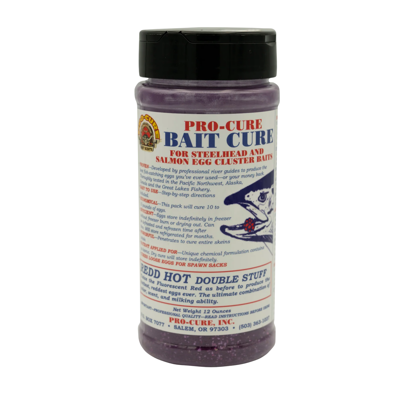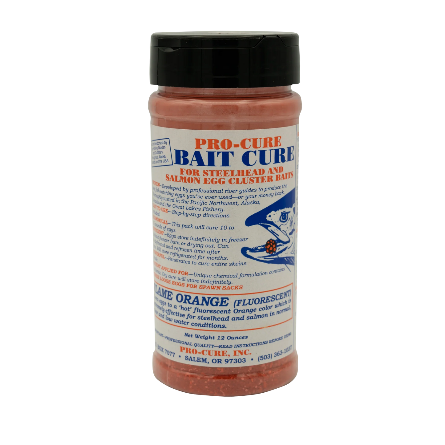 For curing steelhead and salmon eggs. Cures cluster eggs, loose eggs and single trout eggs. A 12 ounce pack will cure 10-15 pounds of roe, which will store refrigerated up to 1 year and freeze indefinitely. Flame Orange for steelhead; Natural for low water steelhead; Steelie Pink (fluorescent: Great for trout and steelhead in wide range of water conditions. Redd Hot Fluorescent Red: Excellent for salmon in all types of water & steelhead in high or discolored water.