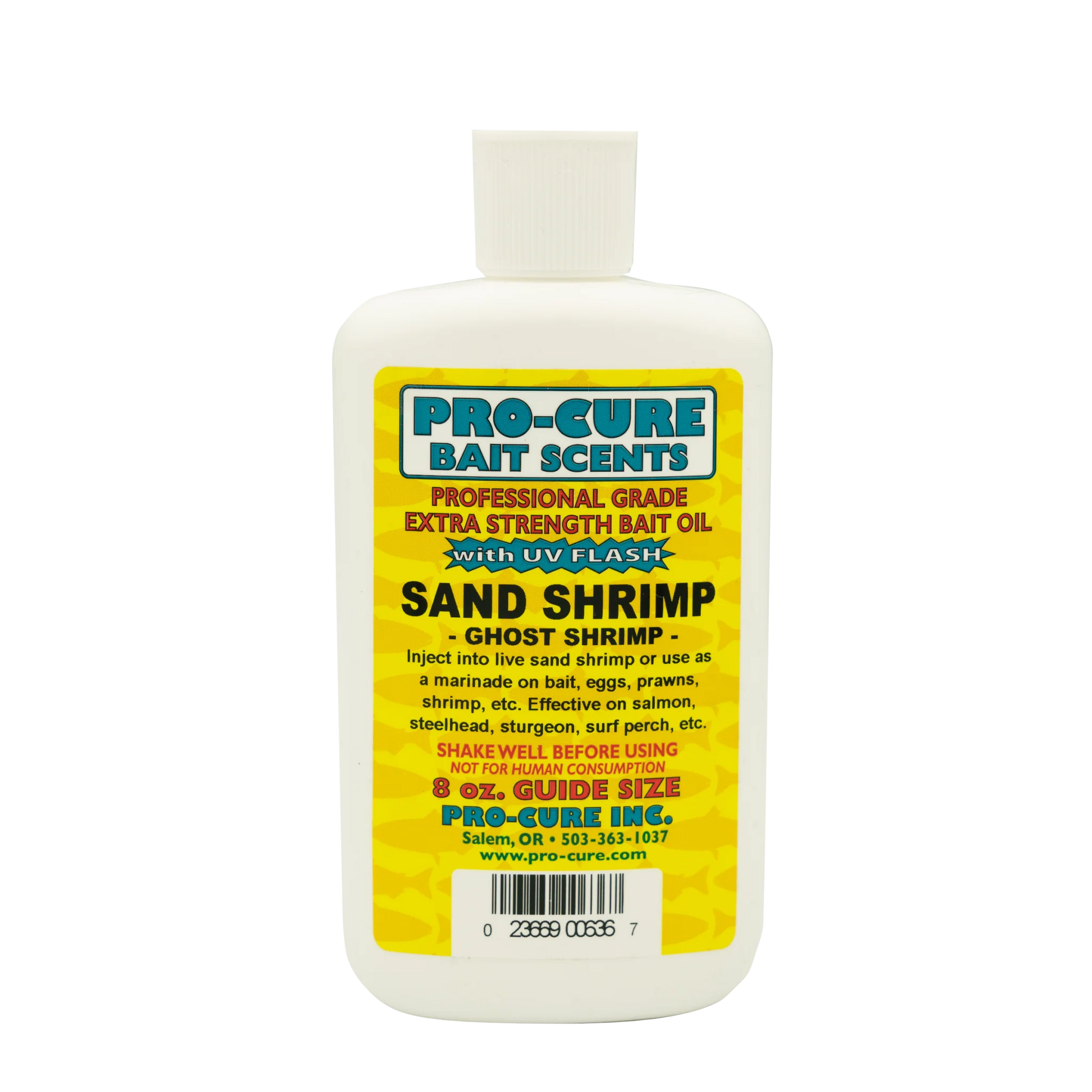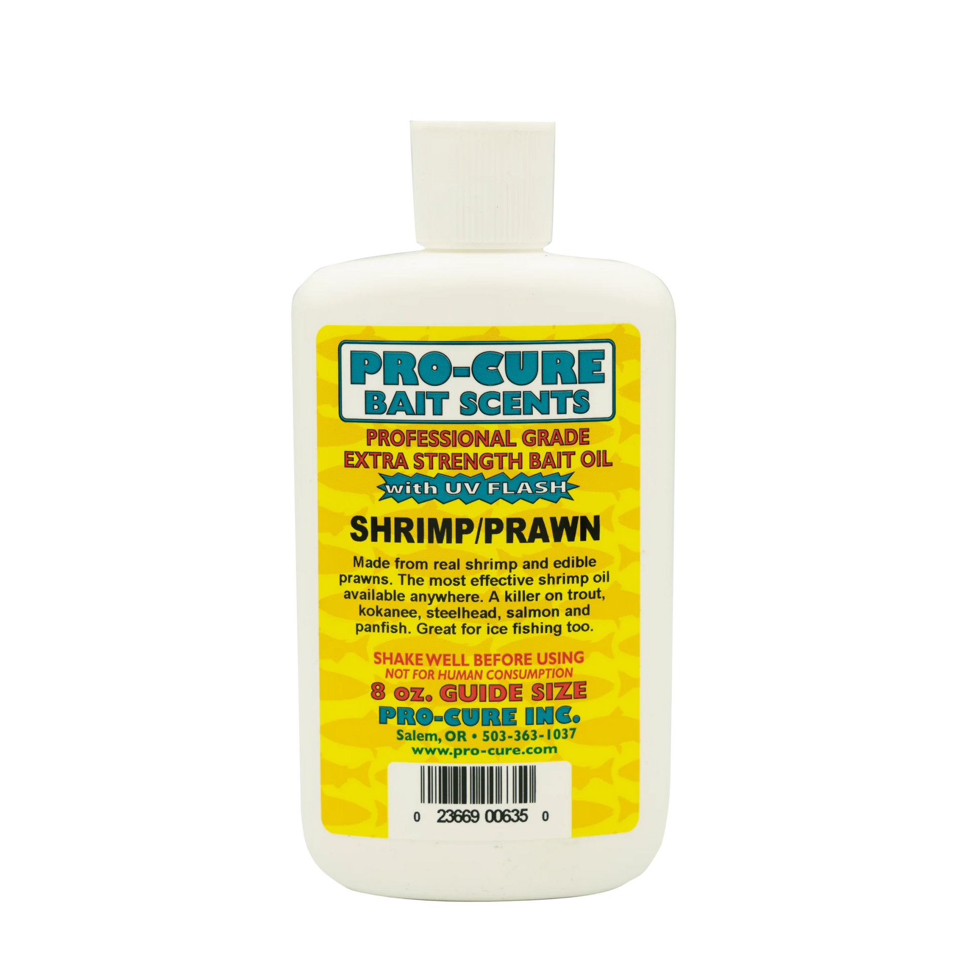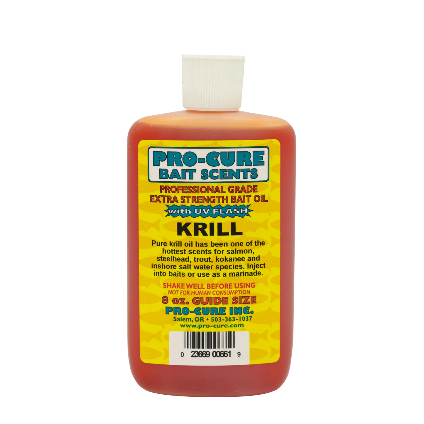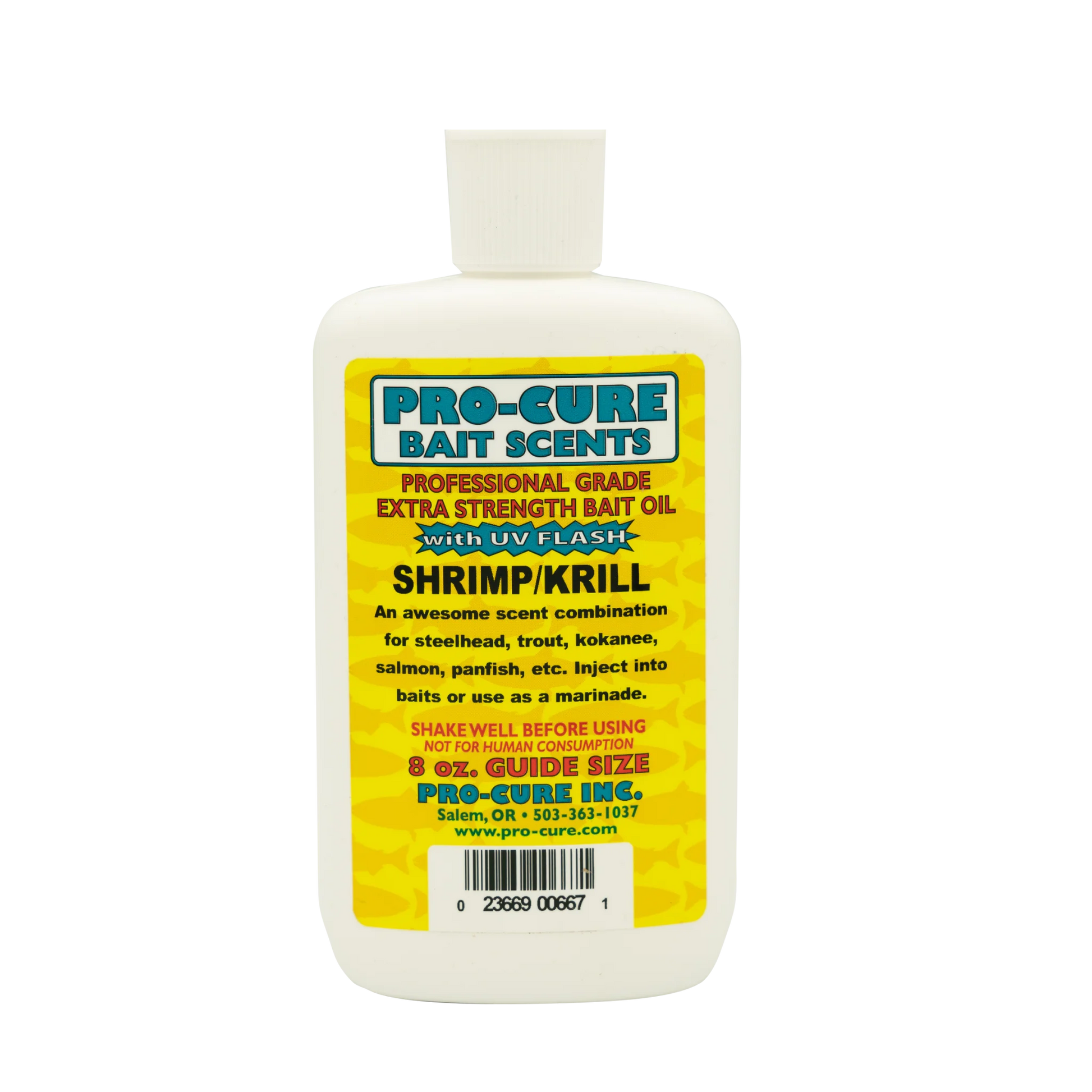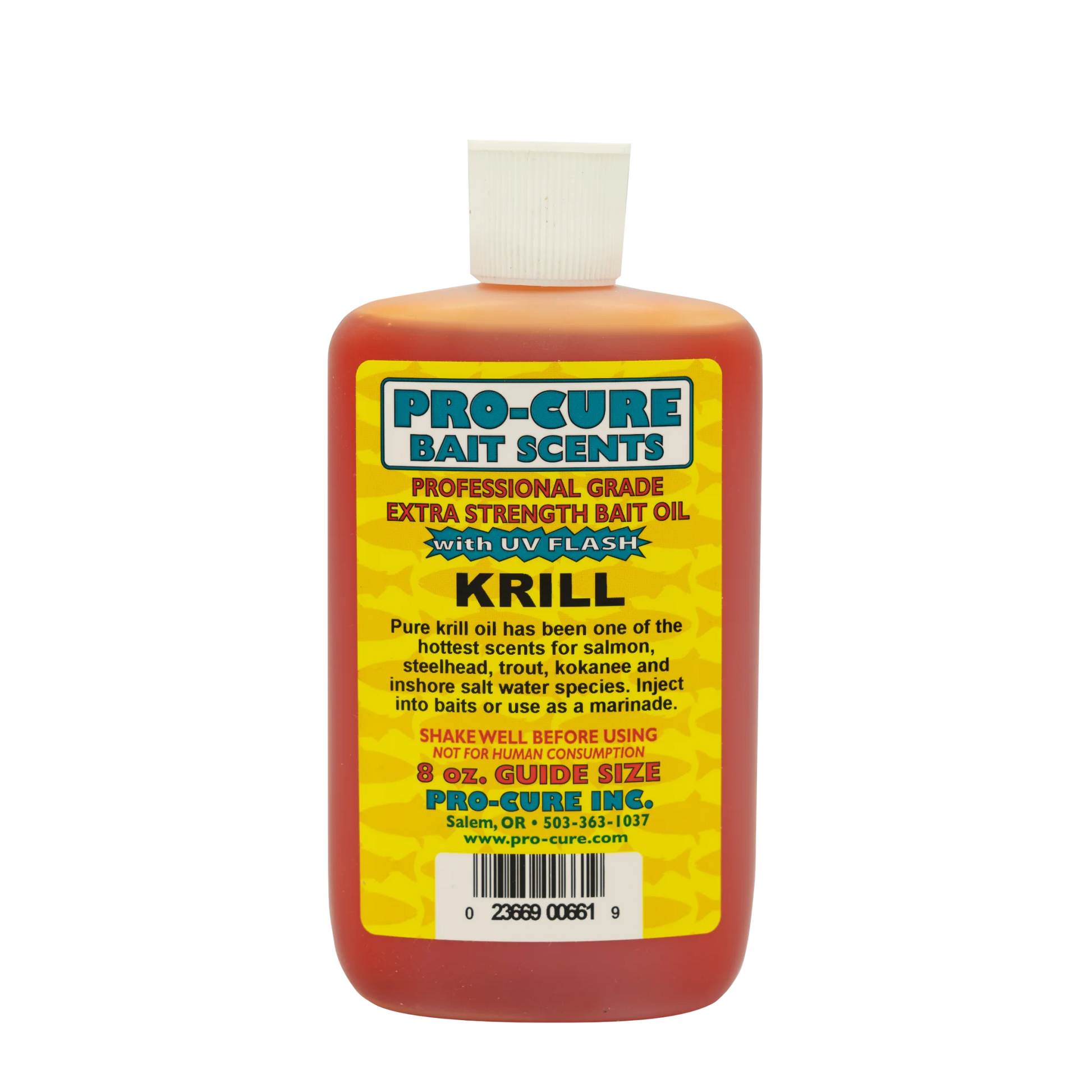 Pro-Cure Bait Oils are a legendary series of oil-based fishing scents and attractants. Scents are made with real ground up baitfish, nightcrawlers, krill, shrimp, salmon eggs, and other tasty dead critters and common aquatic snacks (depending on the scent). These scents are then further enhanced with anise oil, amino acids, and UV Flash. They can be used both as a marinade or squirted onto or injected into baits.
