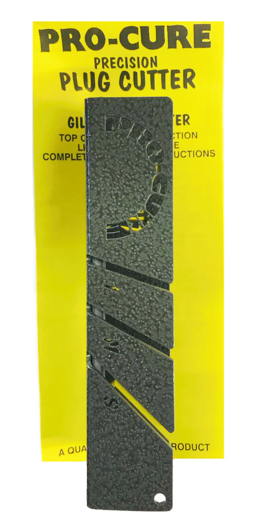 There are three basic variables to controlling the roll of your bait, the boat or current speed, the placement of your top hook, and the angle of your cut. With a plug cutter, you get a consistent compound angle on every cut, so you have removed one variable from the equation. The angle of the three cuts with the Pro-Cure Precision Plug Cutter creates the perfect roll depending on size of baits and the angle of cut. Features complete illustrated directions.