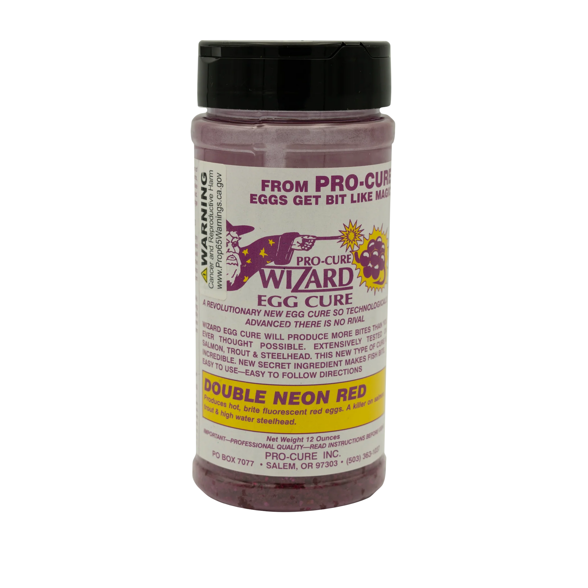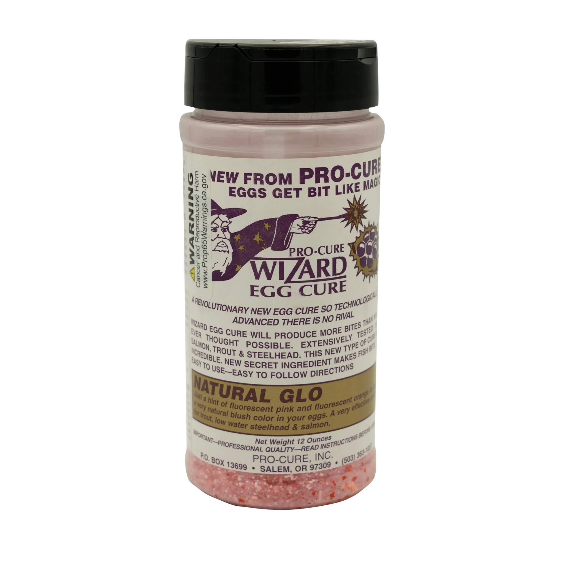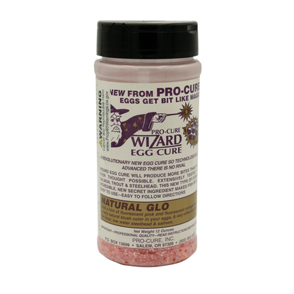 Contains a hint of fluorescent pink and orange to give eggs a natural blush color. Eggs come out looking like fresh eggs. A favorite for trout, low water salmon and steelhead. Very popular in the mid west and east coast for low water winter steelhead on single eggs and spawn sacks. A totally unique curing formula that is loaded with a complex blend of amino acids that get salmon, steelhead and trout to feed aggressively. Anglers consistently report outfishing all the other anglers around them using Wizard Egg Cure.