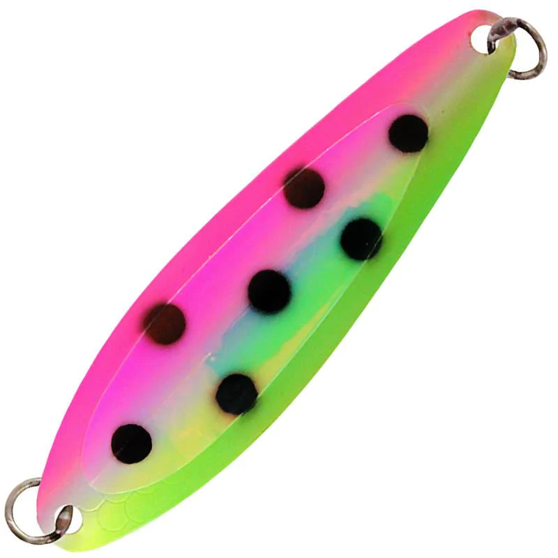 Produced in the USA, the Silver Horde Kingfisher Spoon combines flashy colours with a fist tempting wobble to catch the eyes of patrolling predators. These lightweight spoons are effective on a large range of species in both salt and fresh water and comes equipped with welded rings and sticky sharp hooks.