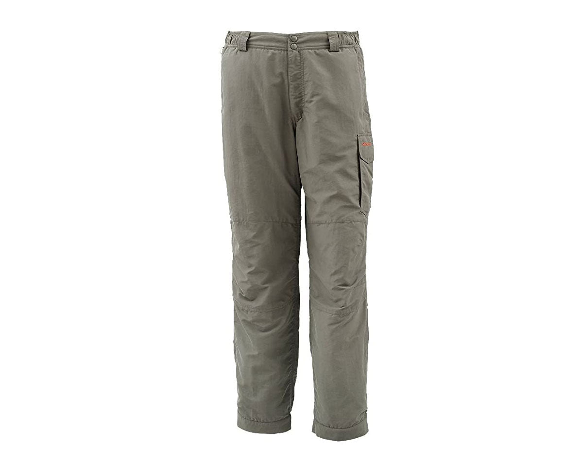 Pants equipped for deep-freeze conditions. Freezing mornings? No sweat. Simms' Coldweather Pants combat the conditions thanks to micro fleece-lined internals and hand-warmer pockets. Angler-appreciated extras include a hidden expansion waist that accommodates added layers (and meals); corrosion-fighting center-front snap; Velcro® tab for cinching the leg prior to slipping on waders; and articulated knees for bolstered durability and mobility.