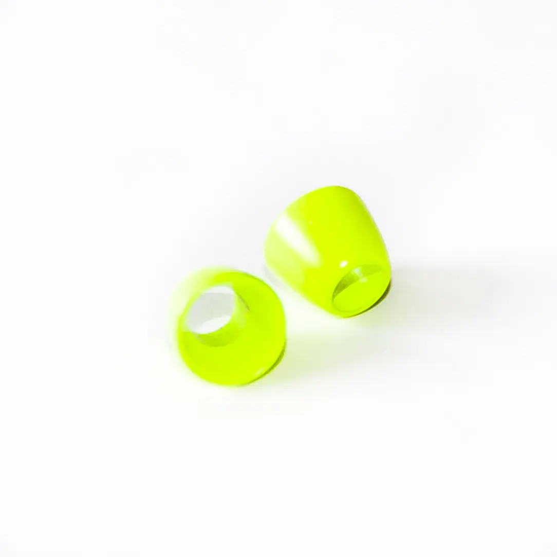 We had these cone heads specifically manufactured for us to fit our 3.0 mm tubes. By using the cone directly on the 3.0 mm tube the resulting pattern becomes much stronger than cones placed on a 1.8 mm tube. It also allows you to speed up the tying process by omitting the insertion of a smaller tube into a bigger tube. These are high quality, brass machined cones, with an extremely durable paint finish. Available in a range of the most popular colours.