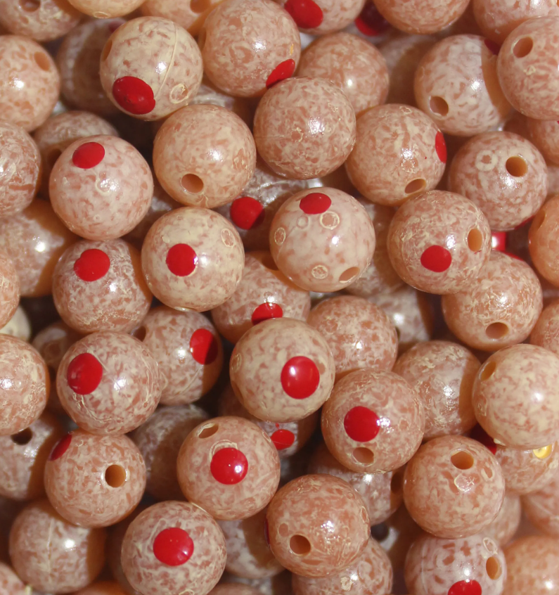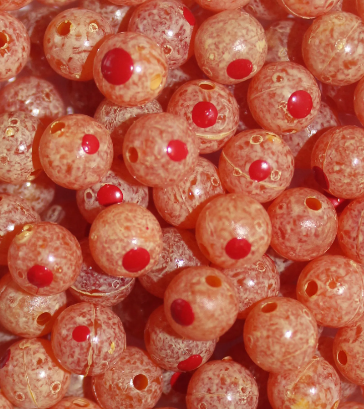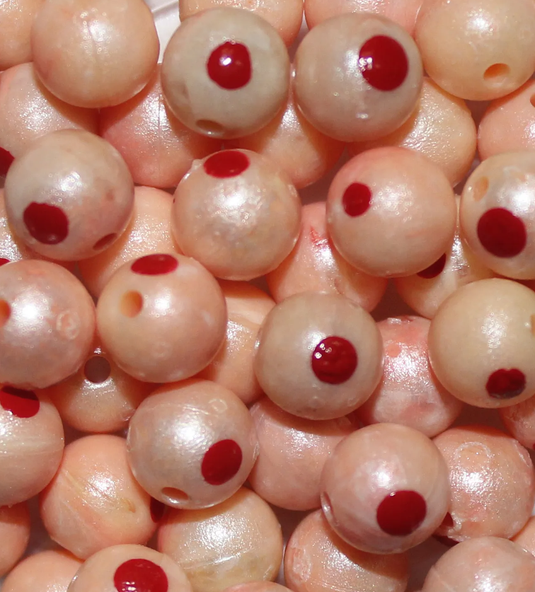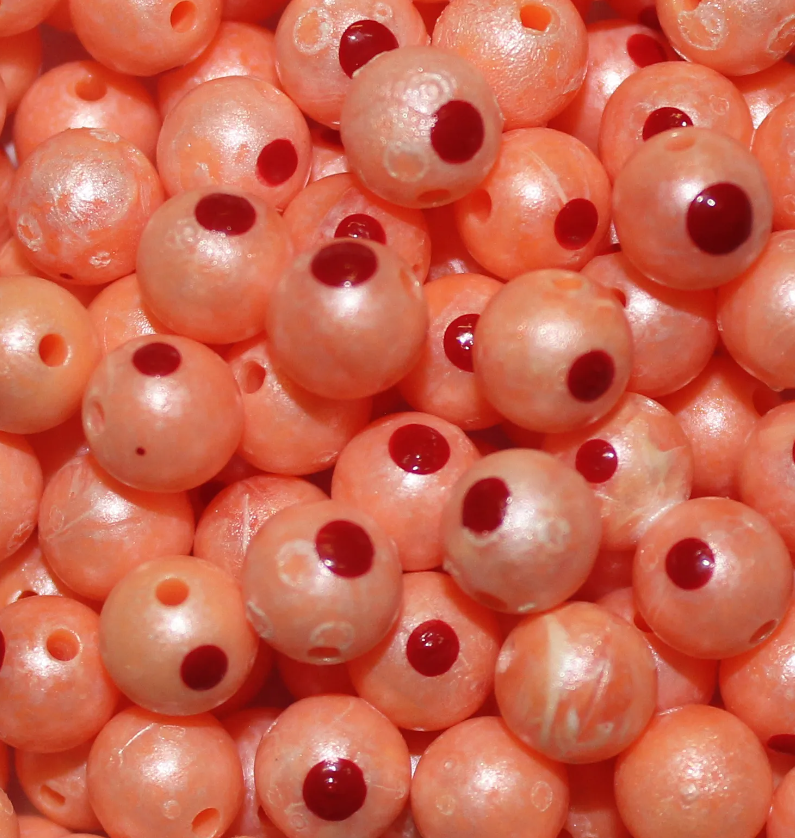 BloodDotEggs were created to mimic the blood spot in the yolk sac of the fish eggs.