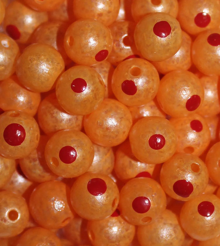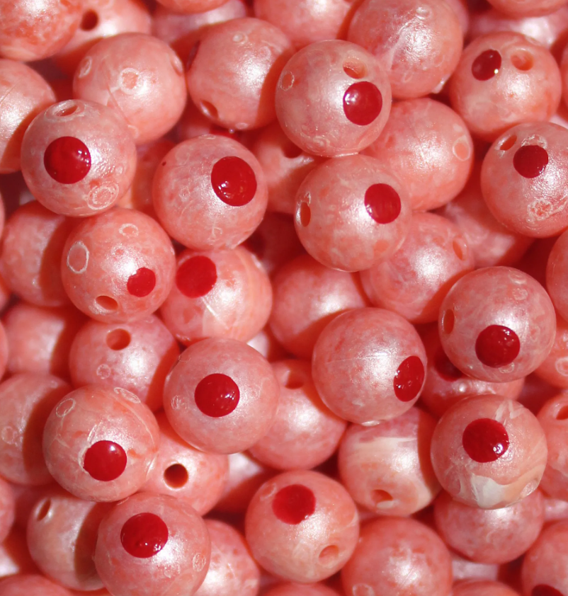 BloodDotEggs were created to mimic the blood spot in the yolk sac of the fish eggs.