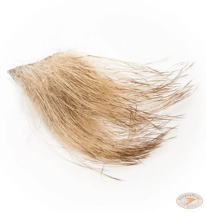 European Wild boar is commonly used in Atlantic salmon fly patterns. The guard hairs are mostly used to imitate feelers in shrimp patterns. Although still fairly uncommon in steelhead patterns, European Wild Boar opens up a range of possibilities for steelhead flies. It is an excellent material for feelers in shrimp patterns for steelhead and also great for many crustacean imitations for saltwater patterns. In addition to the guard hair, the under-fur is a great substitute for seal. Piece size is roughly 2" x 2"